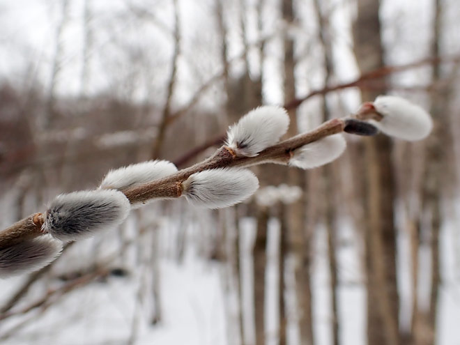 膨らみ始めたバッコヤナギの芽