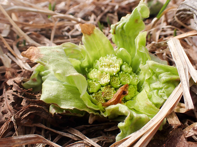 雪の間から顔を出すフキノトウ